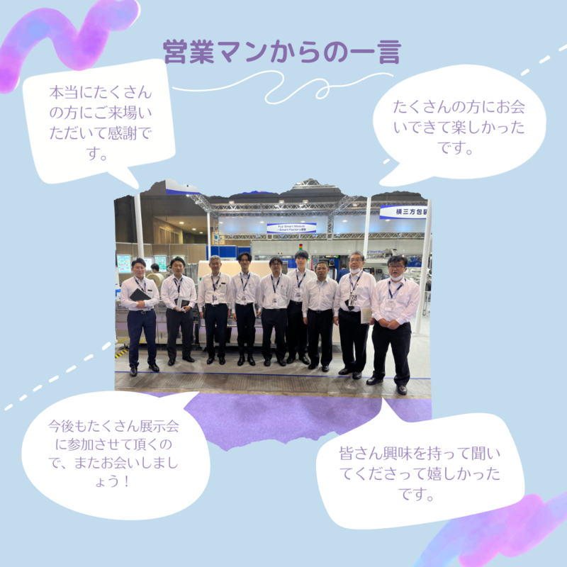 連日たくさんの方々にご来場いただき、そして弊社の包装機に興味を持っていただき誠にありがとうございます。